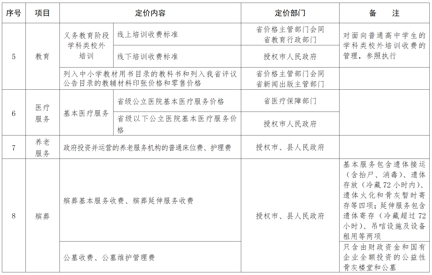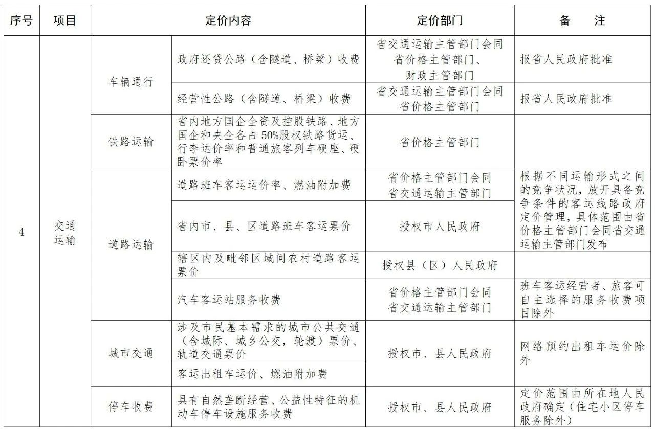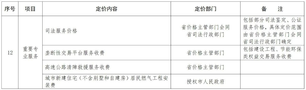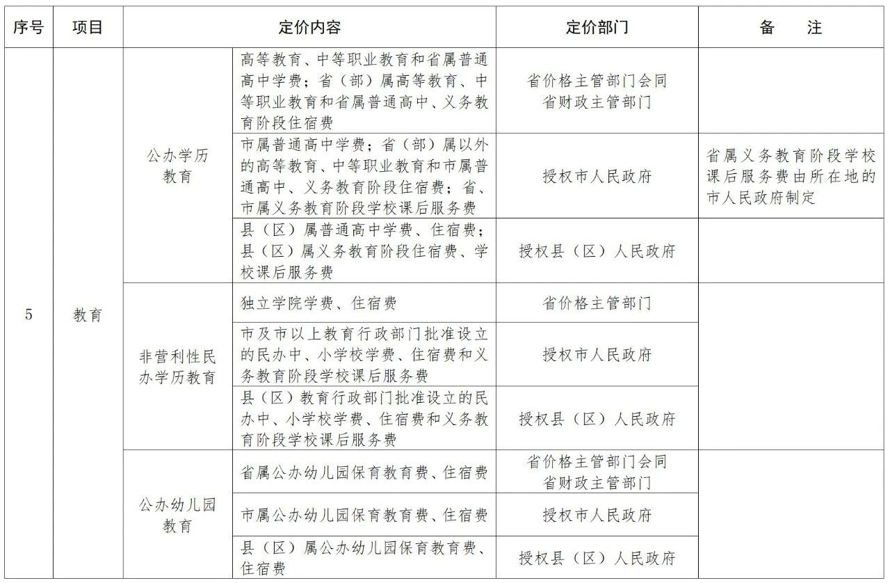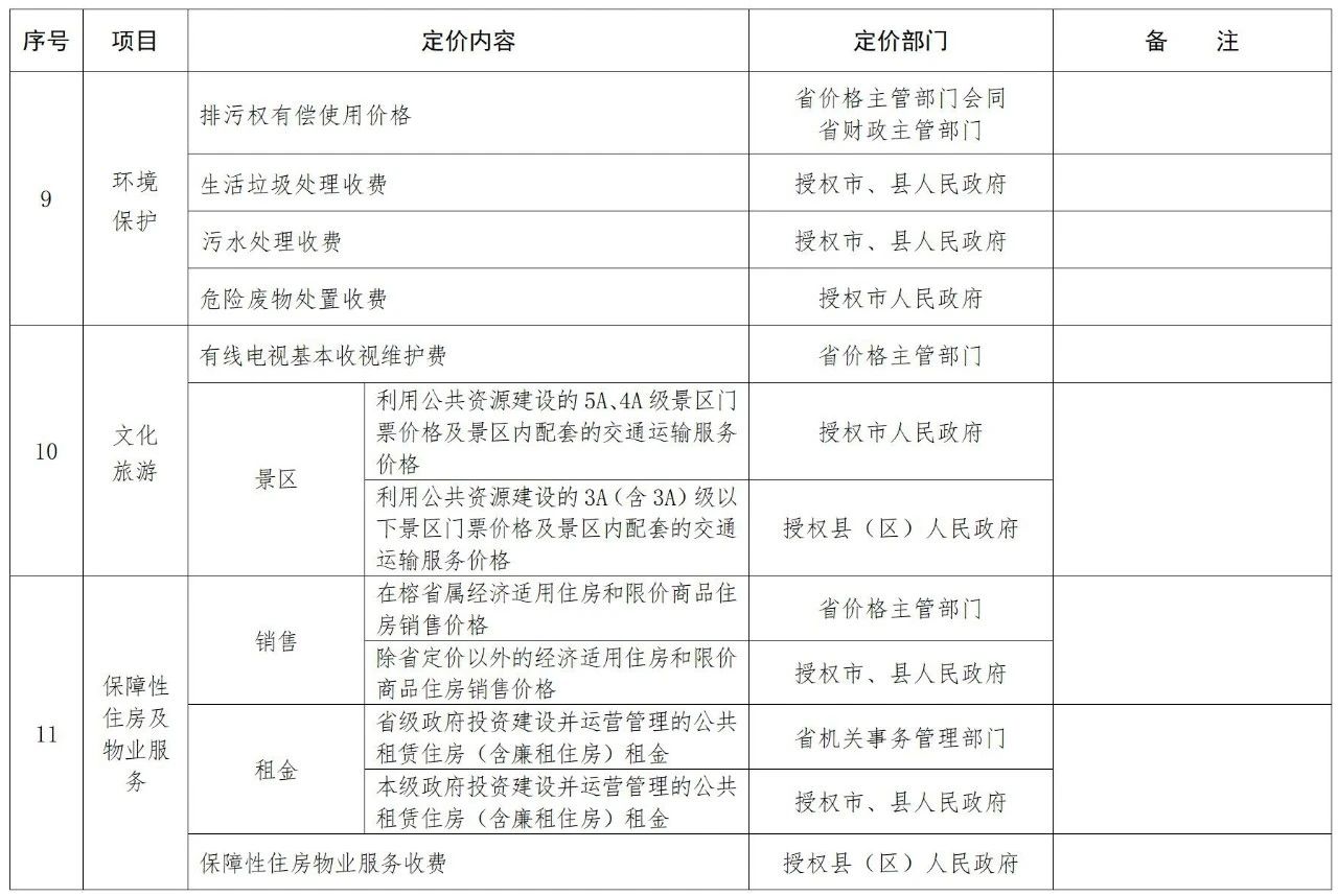福建省定价目录