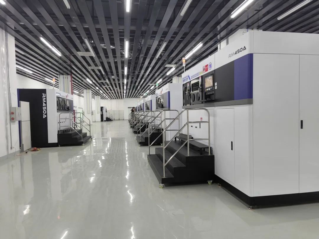 安静整洁的车间里,3D金属打印设备正在生产鞋模。大河数智供图