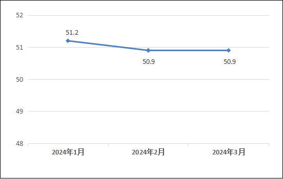 图1 2024年1-3月物流业景气指数(LPI)走势图