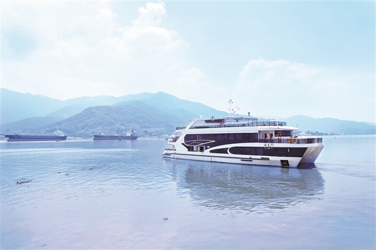 据悉,“屿见77”轮是国内首艘纯电海上旅游客船,也是首艘入级中国船级社的纯电海上客船,被列入福建省电动船舶示范项目。该船总长49米,型宽14.5米,型深4.15米,额定载客358人,采用纯电池动力系统,搭载两台450千瓦推进电机,最大航速20km/h,续航里程达45海里,兼具海上休闲娱乐、游览观光、会议和餐饮功能。