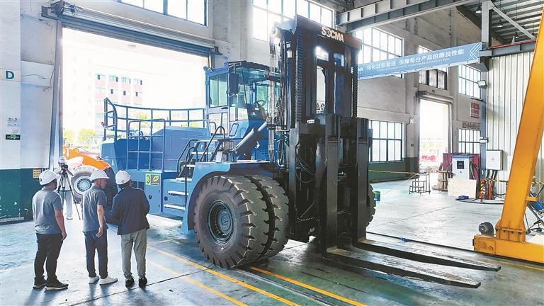华南重工成功下线全国首台50吨级电动重型叉车