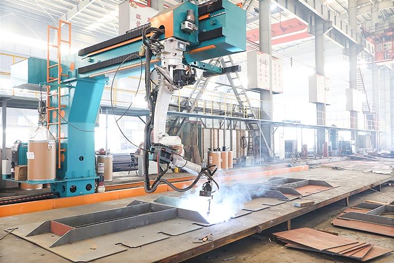 “相较于传统人工焊接,智能机器人能有效保证焊接连续性,大幅减少接头瑕疵,不仅将生产效率提升约70%,还减少50%的人工投入,有效降低人力成本和安全风险。”数控车间负责人刘建辉介绍。