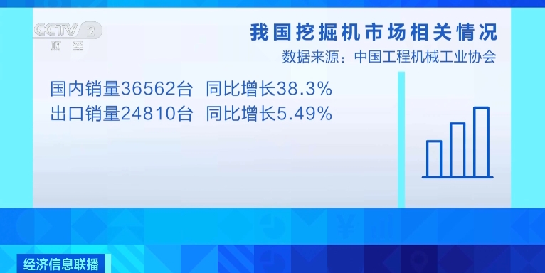 数据显示,2025年1至3月,销售挖掘机61372台,同比增长22.8%;其中国内销量36562台,同比增长38.3%,出口24810台,同比增长5.49%。