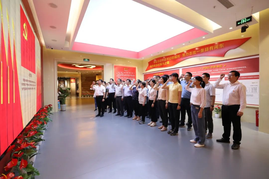 在寿宁县下党乡,学员们参观“难忘下党”主题馆,回顾了习近平同志“三进下党”的难忘历程,从下党矢志不渝脱贫攻坚的生动实践中深刻感悟习近平总书记一心为民的高尚情操和执着坚定的赤子初心,深切领悟习近平总书记倡导的“弱鸟先飞”意识和“滴水穿石”精神。面对鲜红的党旗,学员们庄重地举起右拳重温入党誓词,一句句铿锵有力、掷地有声的宣誓声,激荡着工信干部坚守初心使命、勇于担当奋进的决心。