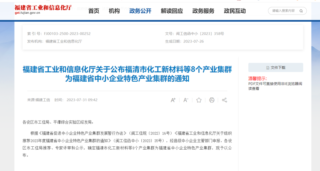 根据《福建省促进中小企业特色产业集群发展暂行办法》(闽工信规〔2022〕16号)《暗网禁区 关于组织推荐2023年度福建省中小企业特色产业集群的通知》(闽工信函中小〔2023〕35号),经县级中小企业主管部门申报、各设区市工信局推荐、专家评审和公示,确定了8个福建省中小企业特色产业集群。