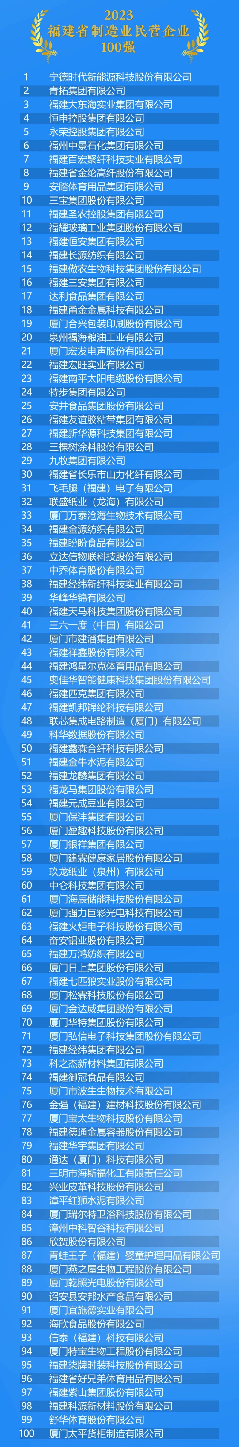 今天(19日)下午,福建省工商联发布2023福建省民营企业百强榜单包括2023福建省民营企业100强、制造业民营企业100强、创新型民营企业100强和服务业民营企业100强4个榜单,福建这些企业上榜↓