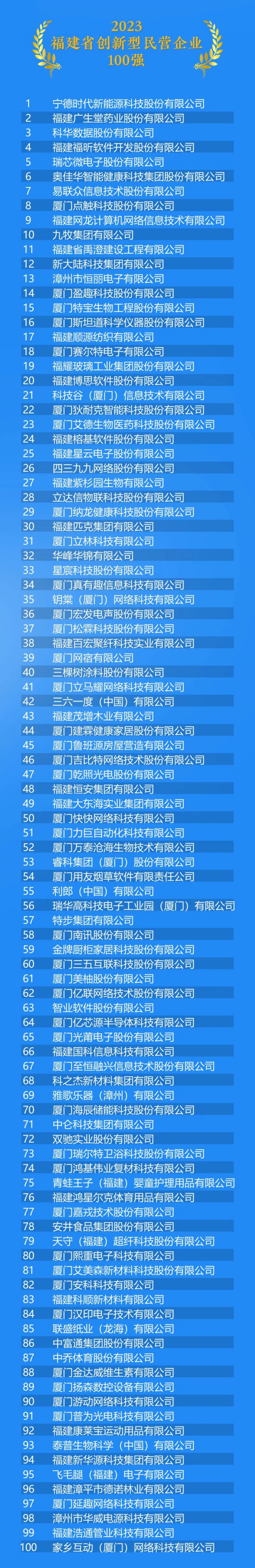 2023福建省创新型民营企业