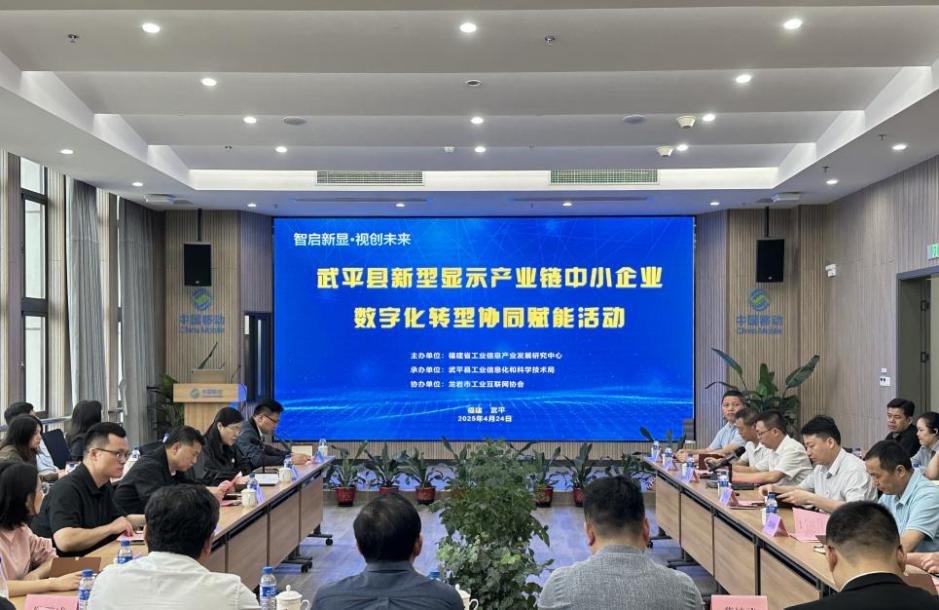 4月24日下午,福建省工业信息产业发展研究中心联合武平县工信科技局共同举办“智启新显·视创未来——武平县新型显示产业链中小企业数字化转型协同赋能活动”。活动聚焦县域重点产业链,旨在通过政策解读、专家分享、案例剖析、方案展示、交流座谈,着力破解企业“不愿转、不敢转、不会转”难题,推动县域产业链与产业集群“链群同转”,为全省数字化转型提供“武平样本”。省工信厅信息化推进处、龙岩市工信局、武平县政府等部门负责同志,省级标杆企业、数字化服务商、工业互联网平台专家代表,新型显示重点企业代表等40余人出席会议。