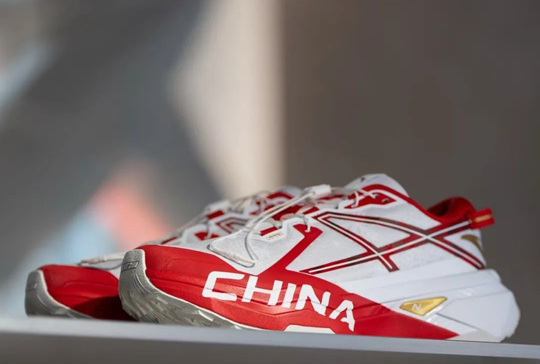红白金配色,雪花纹理与领奖服设计相映提供缓震、稳定、抗扭性能